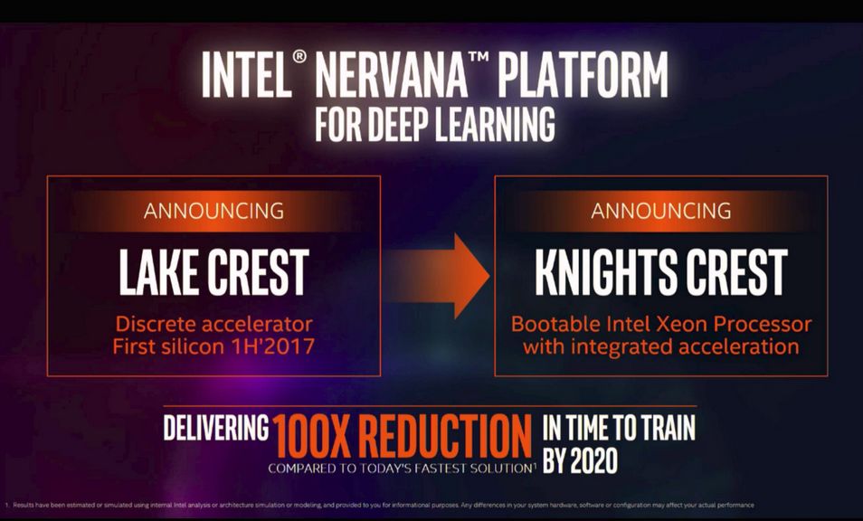 英特尔最新的 Lake Crest 架构针对深度学习计算而设计的,但其纯粹由 CPU 构成的架构变成瓶颈,相比起对手的成长幅度,已经明显落后,因此英特尔将端出与 FGPA 架构作异质整合,代号为 Spring Crest 的新一代 Nervana 神经网络处理器,根据英特尔给的数据,该神经网络架构的性能是 Lake Crest 架构 Xeon Phi 的 3 倍以上。