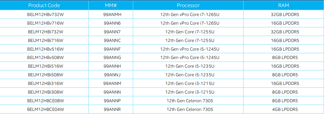 不仅在大小核分配上有差异,对照上表也可以看出,相对于上一代“Elk Bay”,在采用LPDDR5的前提下,“Hard Bay”在内存配置上也有不同,入门级的赛扬模块,内存分为4G与8G,同样,i3、i5、v5(带vpro功能)内存可选择8G或者16G,i7及v7可选配16G或者32G。多层次的配置既可满足不同需求的消费者,也不会因为配置与需求不对称造成冗余。